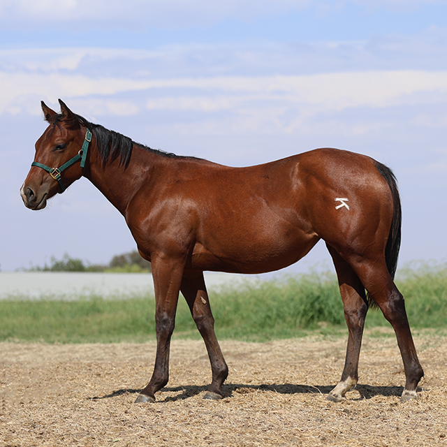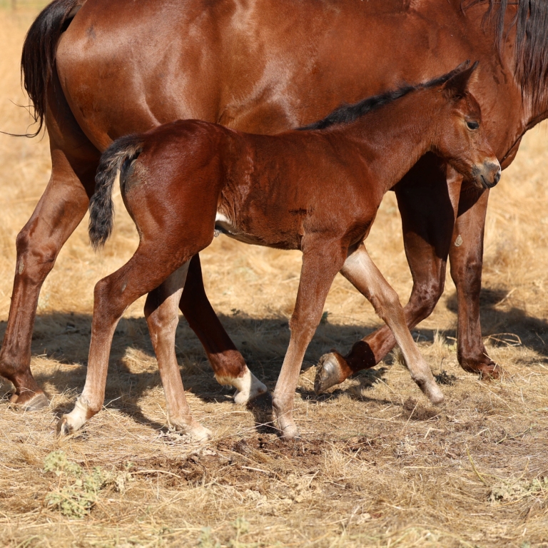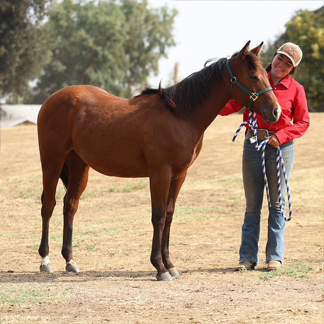 LOVEBUG! This cute filly is adorable and has the personality to match. Her pedigree is outstanding, with many greats right at the front. Her mother, Today, is definitely a fan favorite on the ranch. Markings: Two hind socks and a snip on her nose.